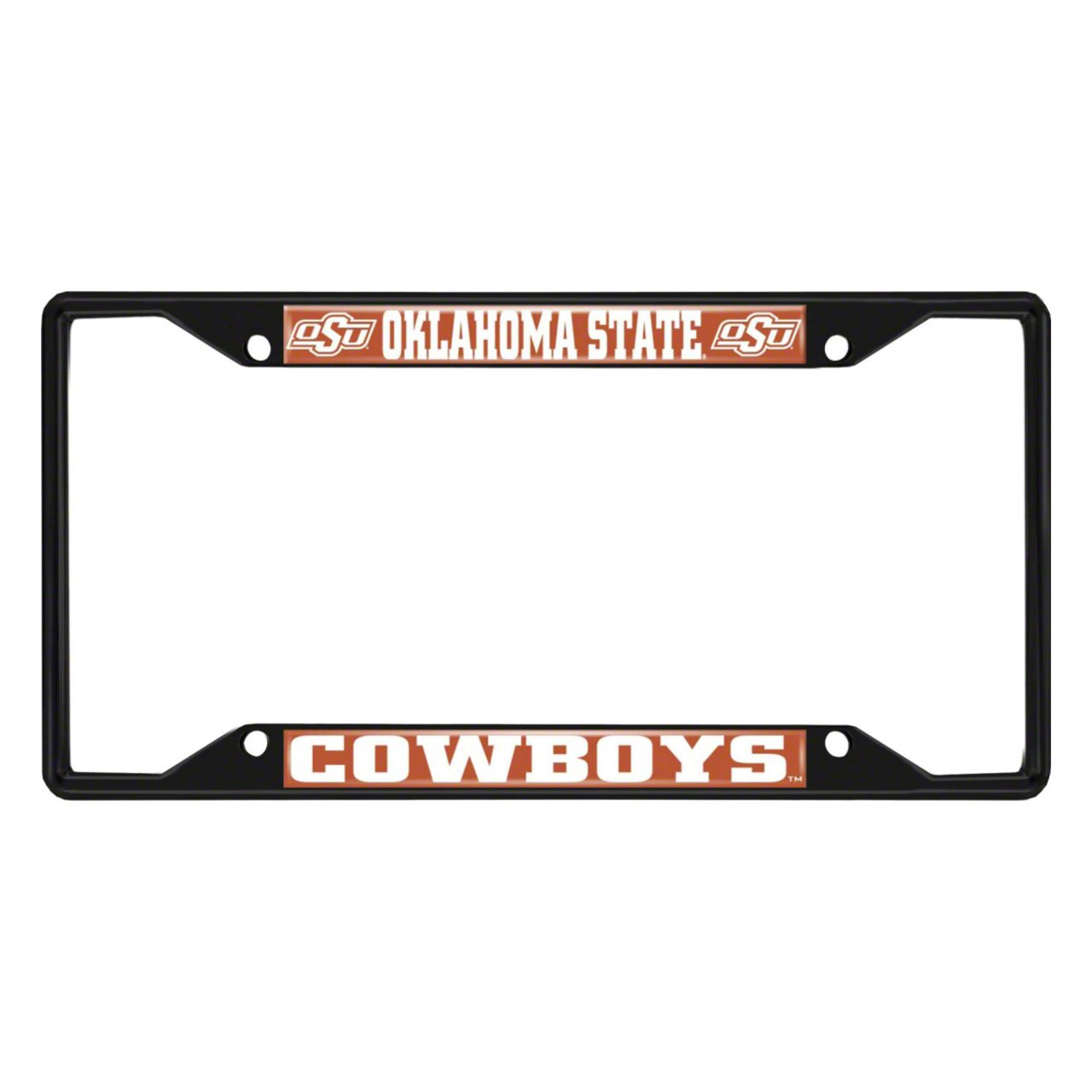License Plate Frame with Oklahoma State University Logo; Black and Black (Universal; Some Adaptation May Be Required)