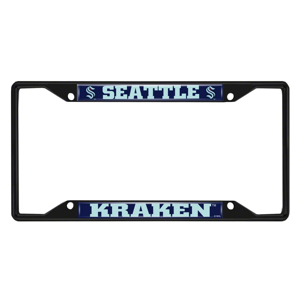 Show off your team pride in style with the Black Metal License Plate Frame from FANMATS. This sleek and long-lasting frame is made of weather resistant metal for a durable product finish. The team name is boldly displayed on the top and bottom portion of the frame in a domed, full color sticker. Our frame is 12.25 in x 6.25 in and is designed to fit perfectly around your license platewithout covering your registration sticker (if applicable).