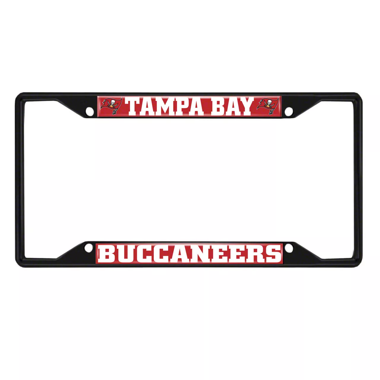 License Plate Frame with Tampa Bay Buccaneers Logo; Black and Red (Universal; Some Adaptation May Be Required)