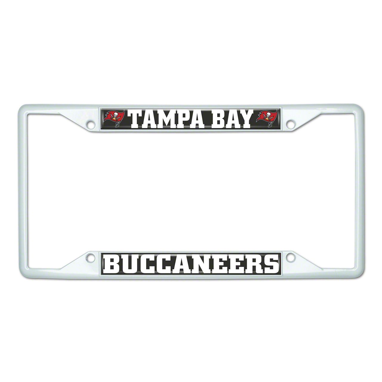 License Plate Frame with Tampa Bay Buccaneers; White (Universal; Some Adaptation May Be Required)