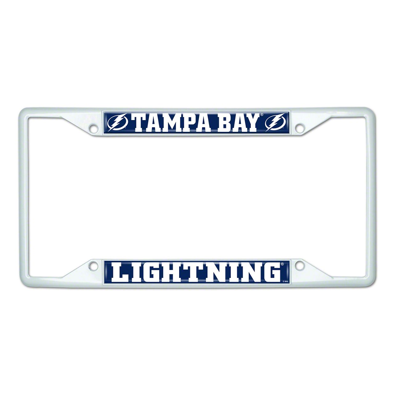 Show off your team pride in style with the White Metal License Plate Frame from FANMATS. This sleek and long-lasting frame is made of weather resistant metal for a durable product finish. The team name is boldly displayed on the top and bottom portion of the frame in a domed, full color sticker. Our frame is 12.25 in x 6.25 in and is designed to fit perfectly around your license platewithout covering your registration sticker (if applicable).