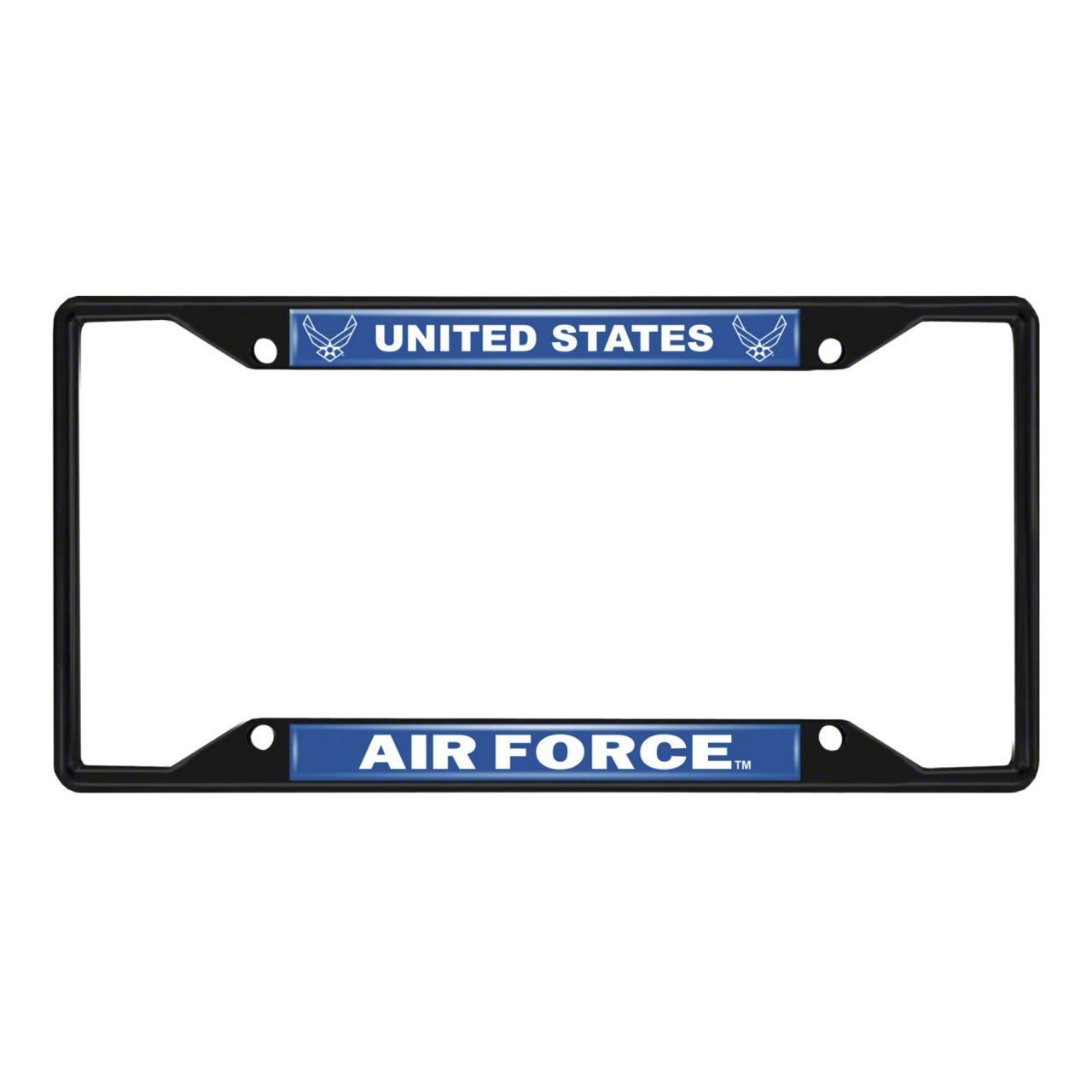 License Plate Frame with U.S. Air Force Logo; Black and Blue (Universal; Some Adaptation May Be Required)