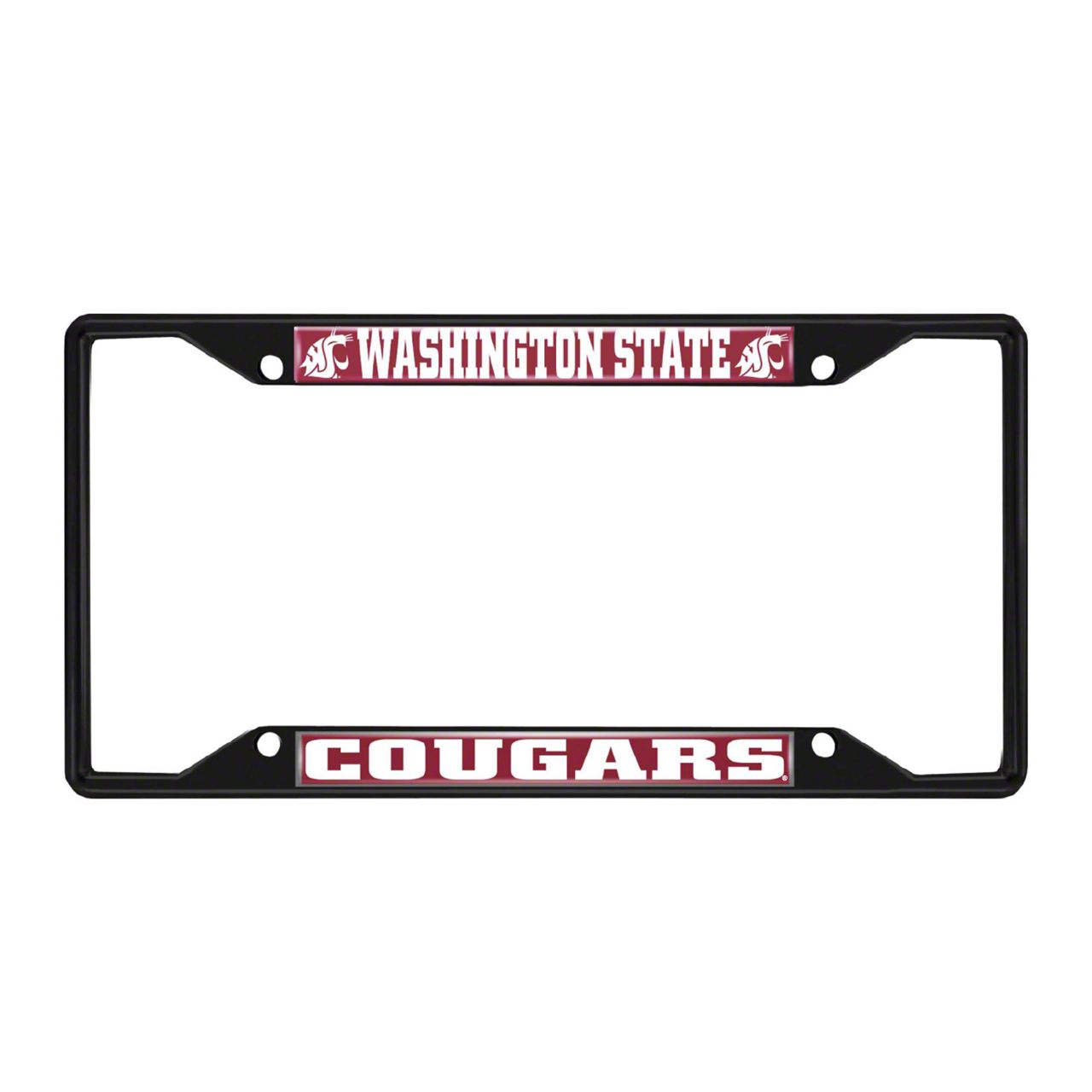 License Plate Frame with Washington State University Logo; Black and Gray (Universal; Some Adaptation May Be Required)