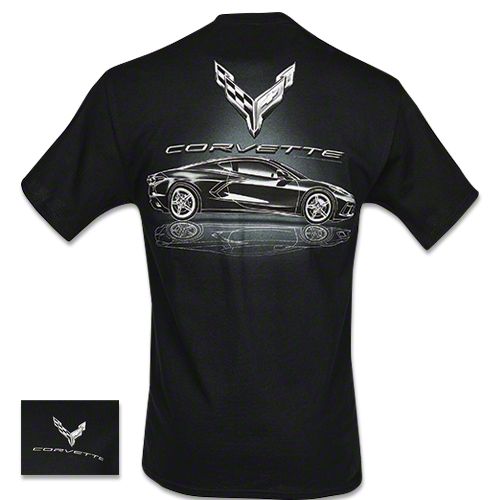 Men's Metallic Tonal T-Shirt with C8 Front Logo and Rear Graphics; Black