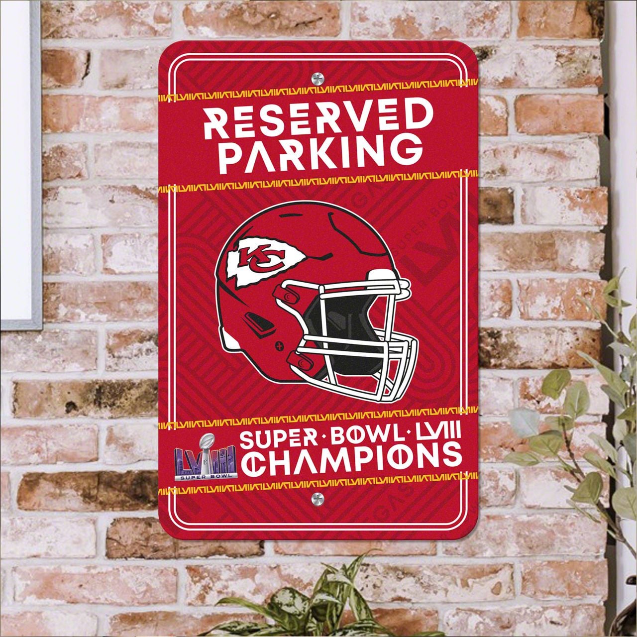 Eckler's no longer carries the Parking Sign with Kansas City Chiefs Super Bowl LVIII Champions Logo; Red.