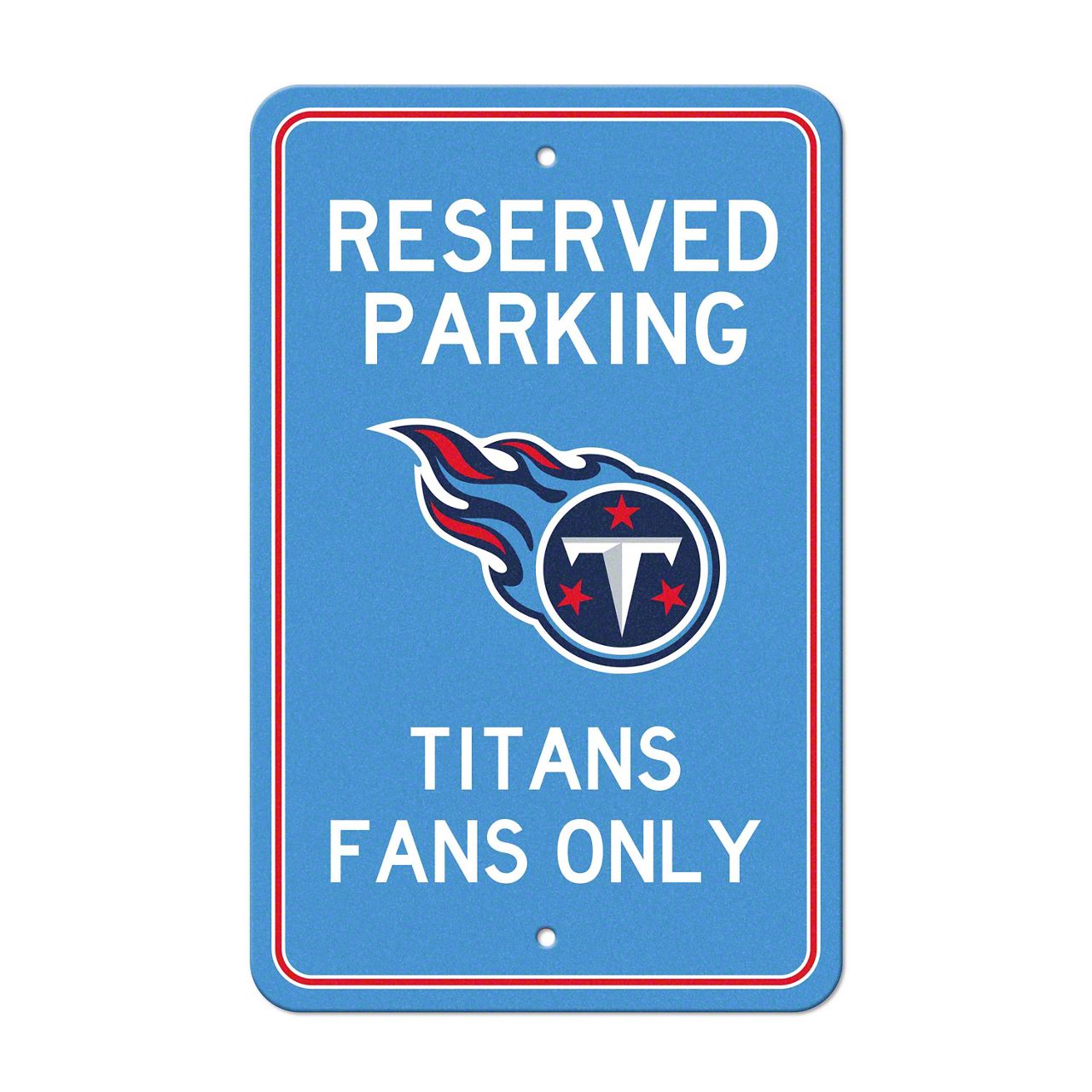 Reserved Parking for Fans Only! This 18in. x 12in. parking style sign is the perfect décor piece for any fan's basement, room, office or tailgate. This sign is lightweight plastic, featuring team colors and logos, as well as 2 pre-drilled holes for convenient hanging. Show everyone what fans are the best!