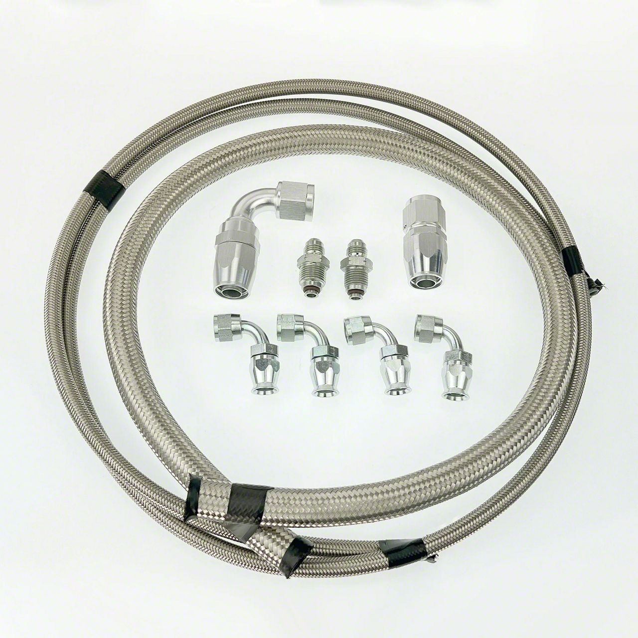 Stainless Braided Power Steering Hose Kit; Late GM Steering Box to Remote Reservoir