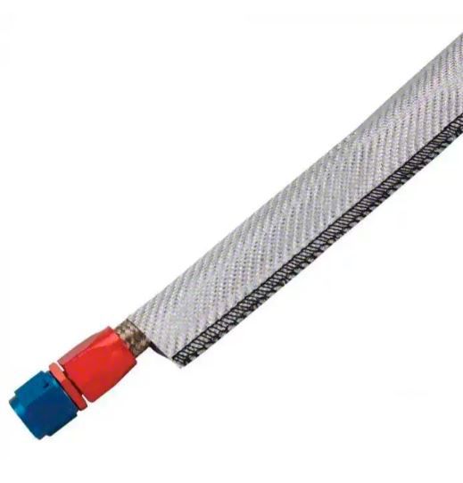 Light weight aluminum impregranated glass fiber sleeve. 1200 degree radiant heat rating. Light and flexible