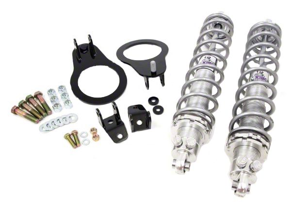 UMI Performance, Inc is proud to introduce our P/N 2046 GM F-body bolt-in rear coilover bracket kit. This kit allows installation of a true double rod end performance shock in place of the standard stud type shock. P/N 2046 can be used with standard type springs as well as most aftermarket lowering springs. An innovative, TIG welded lower bracket holds the shock in double shear and works with standard axle mounts as well as with most common relocation brackets (spacers included). Drilling two 3/8” holes is required (no welding). The teardrop shaped upper mount is also double shear and features a straight pull design for optimum performance. Designed for 14”-16” ride height dampers with a 1.25” width and ½” bushing diameter. Contact UMI for further information. Supplied powder coated bla