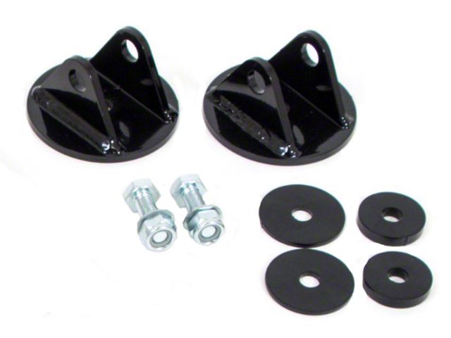 UMI’s F-body front coilover kit permits installation of a true 2-1/2” racing coilover spring and shock into your 93-02 GM F-body. Factory style lower t-bar fits factory GM, UMI and most other brands of lower arms intended for stock t-bar. The factory GM rubber shock mount tends to rust out and allow unwanted movement while being costly to replace. The UMI coilover kit replaces that unit with a bolt-in, race proven double shear upper mount which drains nicely and is powder coated for durability. The UMI designed upper brackets capture a Viking double adjustable coilover specific shock and a 300, 350, 450 and 550 lb-in spring. We recommend 550 for auto-x and road racing, 450 for hot street and corner carving, 350 for general use and 300 for drag specific use. Included Viking shocks use up