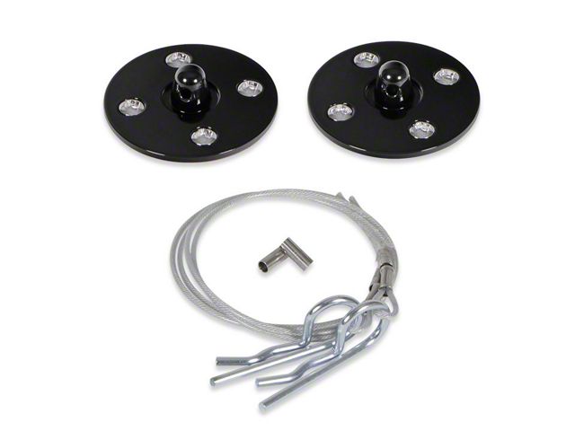 hese new high quality black powder coated billet aluminum hood pins are a perfect fit for both classic and modern muscle cars.
