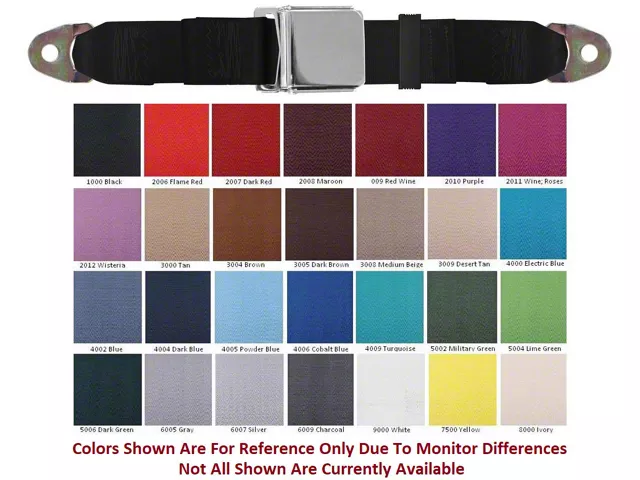 If your classic or vintage Ford doesn't already have seat belts, we highly recommend them. Our universal replacement style seat belts are the lift latch type and are available in 14 colors to match almost any interior. Sold per passenger, each belt includes washers, bolts and nuts to install. The 60 inch size is the standard, for a little extra breathing room, order the 74 inch length.