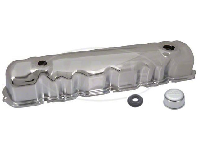 The correct grommet for this cover is our C8AZ-6A892-A. We do not currently have a twist-on chrome breather cap however, we do have a twist-on adapter (C5AZ-6A868-A) that allows the use of push-on breathers, such as our B6AZ-6766-B, B7AZ-6766-AC & C5ZZ-6766-DR, all of which are chrome.