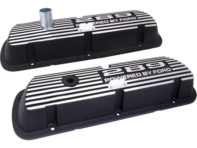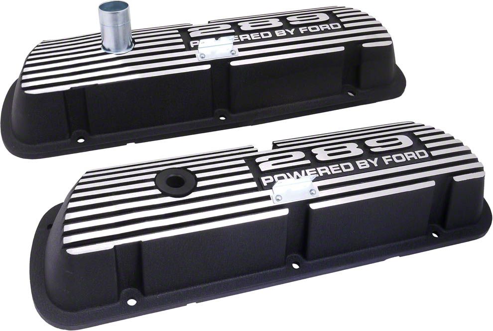 Our black, wrinkle finish, powder coated valve covers shout hi-performance. Pressure die cast using 383-3 aluminum alloy, they include an improved oil baffle design for use with high lift camshafts. The oil filler tube is cadmium plated to resist corrosion. The lettering and the fins are left natural aluminum to offset the powder-coated black for a very sixties look. Spark plug wire brackets and the PCV grommet are included. Pick your favorite and dress up your engine compartment today!