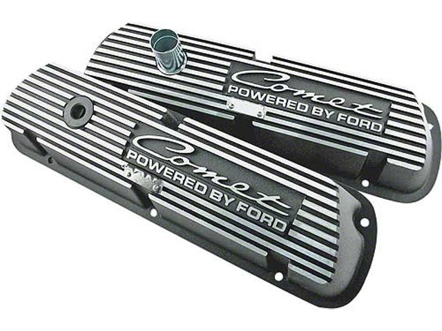 The hottest new product for your engine compartment is now available! We are excited to introduce original style finned aluminum valve covers with original style logos. Made to match original Shelby style valve covers with your custom logo. Also designed with an improved baffle design to clear most high lift roller rockers. Includes spark plug wire brackets, authentic rivets, pcv grommet and cadmium plated oil filler tube to stop corrosion.