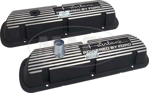 Pressure die cast using 383-3 aluminum alloy, they include an improved oil baffle design for use with high lift camshafts. The oil filler tube is cadmium plated to resist corrosion. The lettering and the fins are left natural aluminum to offset the powder-coated black for a very sixties look. Spark plug wire brackets and the PCV grommet are included.