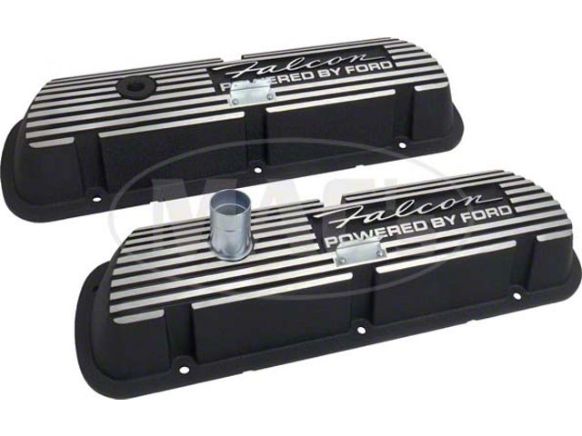 Our black wrinkle finish powder coated valve covers shout hi-performance. Pressure die cast using 383-3 aluminum alloy, they include an improved oil baffle design for use with high lift camshafts. The oil filler tube is cadmium plated to resist corrosion. The lettering and the fins are left natural aluminum to offset the black powder coat for a very sixties look. Spark plug wire brackets and the PCV grommet are included. Pick your favorite and dress up your engine compartment today!