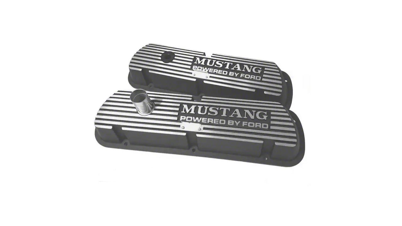 These officially licensed Mustang aluminum valve covers are back! These are hands-down the highest quality valve covers available today. They are made with pride in the USA and feature die-cast aluminum construction with integrated heat-sink fins for years of lasting performance. The authentic design of these valve covers has squared off bolt access ports modeled after original Shelby cast valve covers from the 60's. They also feature exclusive low profile baffles providing maximum clearance for high lift cams and most aftermarket roller rocker arms. These will not fit the 5.0L EFI engine.