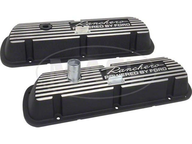 Pressure die cast using 383-3 aluminum alloy, they include an improved oil baffle design for use with high lift camshafts. The oil filler tube is cadmium plated to resist corrosion. The lettering and the fins are left natural aluminum to offset the powder-coated black for a very sixties look. Spark plug wire brackets and the PCV grommet are included.