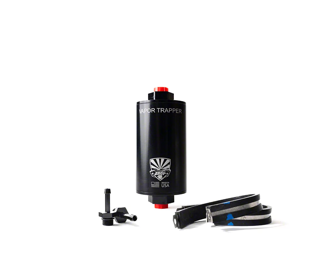 Vapor Trapper™ Basic Install Packages are now available! Get everything you need for a proper Vapor Trapper™ installation in one package! Includes:1 x Vapor Trapper™ (Select model at checkout)2 x Barb Fittings (Select size at checkout)2 x Dell Clamps (Fuel-rated vent hose supplied by customer.) The Shop48 Vapor Trapper™ is a high-quality billet aluminum charcoal canister that eliminates fuel odors from vented fuel tanks. Its specialized charcoal media traps vapors, keeping garages and cabins fume-free. Designed for universal fitment, it installs easily in line with your fuel tank vent hose and supports almost every inlet/outlet setups. It’s also fully serviceable and rechargeable for long-lasting performance.Built for tough conditions, the Vapor Trapper™ eliminates odors without restricting airflow or affecting fuel system function—ideal for classics, hot rods, trucks, or boats. Proudly made in the USA and trusted by pros nationwide, it's available in black or silver anodized finishes for a clean, durable look.
