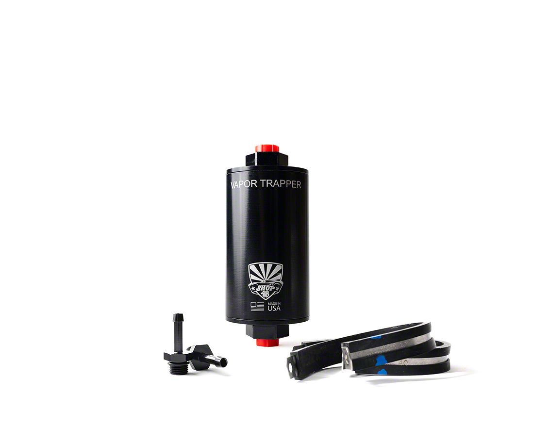 Vapor Trapper™ High Performance Basic Install Packages are now available! Comes with -8 End Caps for use with high horsepower engines with a need for 1/2" vent lines. (can also be used with ANY fuel tank needing a larger vent line). Get everything you need for a proper Vapor Trapper™ installation in one package! Includes:1 x Vapor Trapper™ (Select model at checkout)2 x Barb Fittings (Select size at checkout)2 x Dell Clamps (Fuel-rated vent hose supplied by customer.) The Shop48 Vapor Trapper™ is a high-quality billet aluminum charcoal canister that eliminates fuel odors from vented fuel tanks. Its specialized charcoal media traps vapors, keeping garages and cabins fume-free. Designed for universal fitment, it installs easily in line with your fuel tank vent hose and supports almost every inlet/outlet setups. It’s also fully serviceable and rechargeable for long-lasting performance.Built for tough conditions, the Vapor Trapper™ eliminates odors without restricting airflow or affecting fuel system function—ideal for classics, hot rods, trucks, or boats. Proudly made in the USA and trusted by pros nationwide, it's available in black or silver anodized finishes for a clean, durable look.