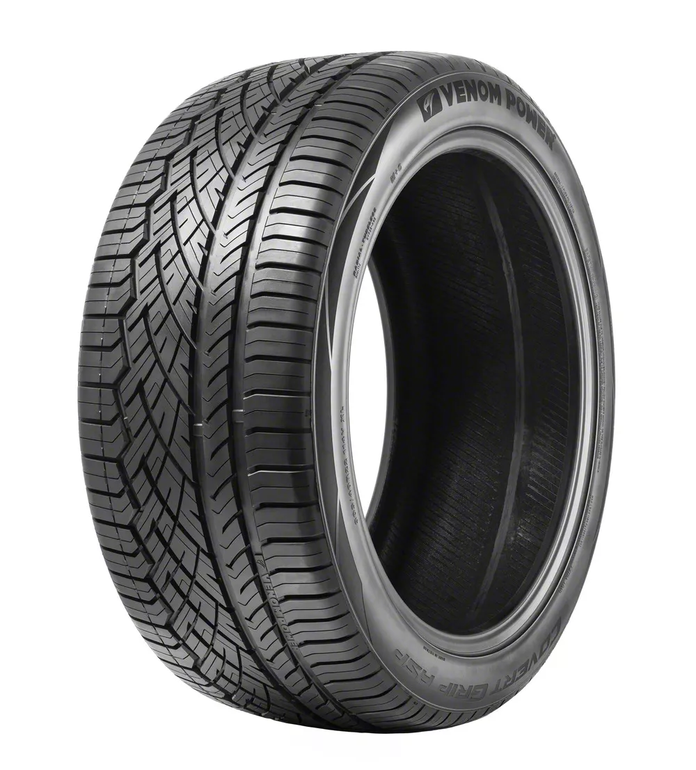 The Venom Power Covert Grip ASP is an all-season ultra-high-performance (UHP) tire engineered to provide exceptional handling and grip in all weather conditions for a variety of vehicles, including passenger cars, crossovers, and SUVs. This is achieved through its unique asymmetrical tread design, where the inner and outer tread patterns differ to optimize performance based on the specific contact patch area.