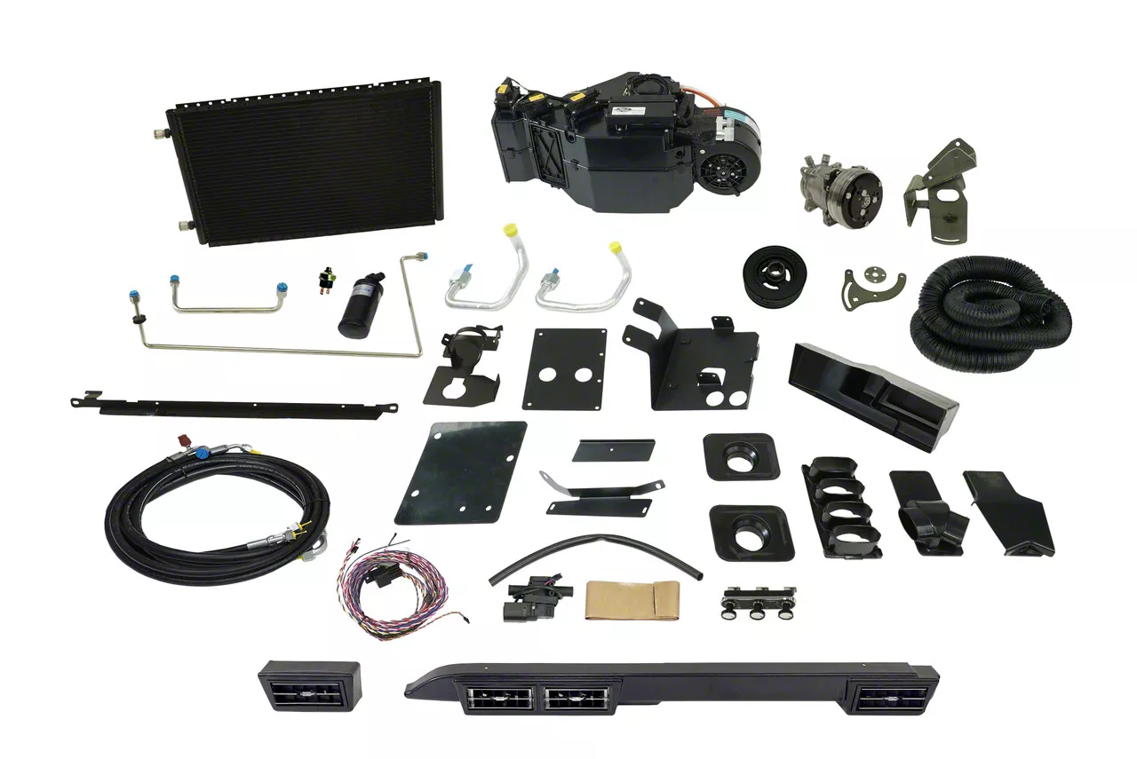 **This complete kit includes everything from the evaporator kit, plus all under-hood components such as the compressor and bracket, condenser with brackets, preformed refrigerant lines, drier, fittings, hardware, and detailed installation instructions.