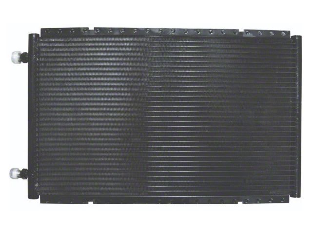 This condenser is just .83 inches thick, but has a lot of surface area for efficient heat exchange. It's perfect for vehicles with large grilles, and/or lots of air flow to the condenser. The top fitting is a male number 8 size, while the bottom one is a male number 6 size. Both seal with o-rings.