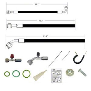 This modified hose kit is designed for use with a complete SureFit™ system in vehicles without a stock engine compartment configuration and core support. The kit contains refrigerant hoses with pre-crimped beadlock fittings on (1) end, with the other end open to accommodate a custom installation. All necessary fittings, O-rings and mounting hardware are also included, along with detailed installation and crimping instructions.