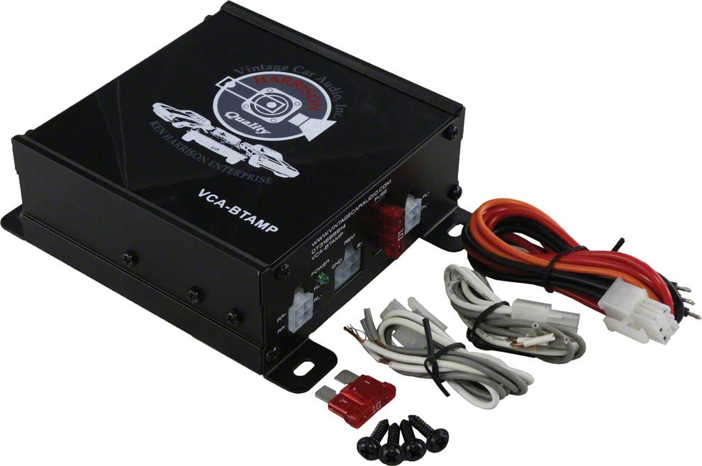This small Bluetooth capable amplifier has the capability to stream music from any wireless Bluetooth enabled device from up to thirty feet away. It can be used with or without a radio in any vehicle. You can simply connect 2 or 4 speakers to the amplifier and work everything directly from a Bluetooth enabled device, or it also can be connected to any radio through an Amp Interface. When connected to a radio, it allows you to listen to all normal radio functions, then once your Bluetooth is enabled, the current sensing mutes the output from the radio and your streaming from your Bluetooth device begins.