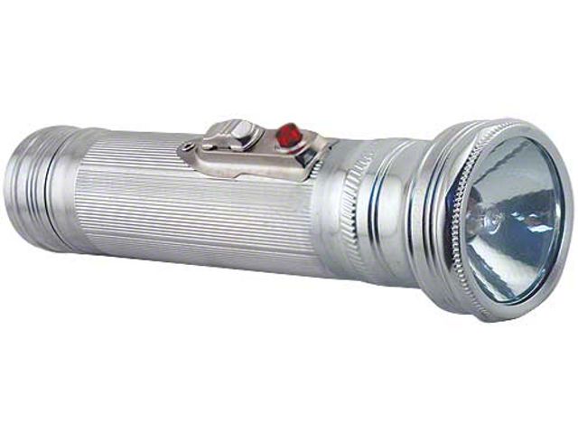 Light up the night with this nifty retro flashlight from Eckler's. This flashlight features an adjustable beam and retro satin chrome finish. The LED bulb lights your way with a crisp glow. This fun flashlight makes a great addition to your glove box, tool box or anywhere. Whether you're looking for restoration parts, accessories or gifts, Eckler's is your source.