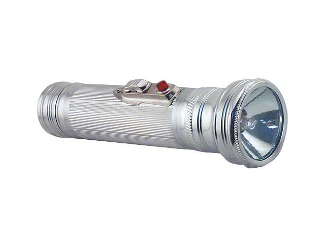 Light up the night with this nifty retro flashlight from Eckler's. This flashlight features an adjustable beam and retro satin chrome finish. The LED bulb lights your way with a crisp glow. This fun flashlight makes a great addition to your glove box, tool box or anywhere. Whether you're looking for restoration parts, accessories or gifts, Eckler's is your source.
