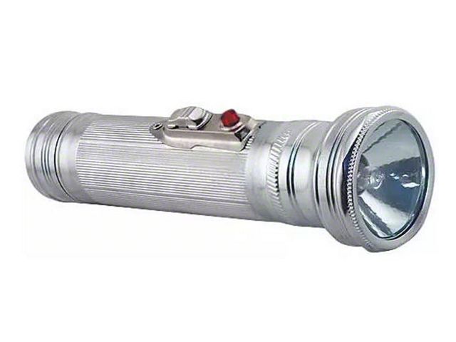 Light up the night with this nifty retro flashlight from Eckler's. This flashlight features an adjustable beam and retro satin chrome finish. The LED bulb lights your way with a crisp glow. This fun flashlight makes a great addition to your glove box, tool box or anywhere. Whether you're looking for restoration parts, accessories or gifts, Eckler's is your source.