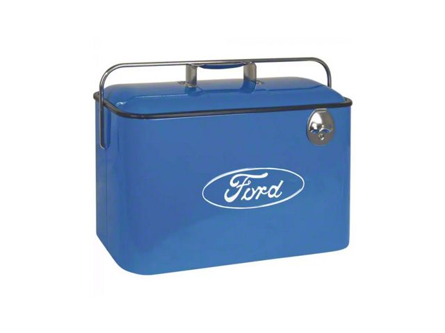 With a Ford oval on the front and an old-time ice chest look, this classic cooler is sure to complement your classic Fo