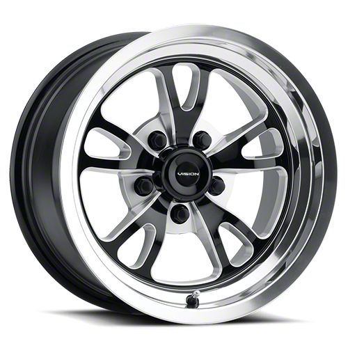Vision Wheel Patriot Gloss Black Milled Spoke with Polished Lip Wheel; 15x8; 27mm Offset. This Vision Wheel Patriot Gloss Black Milled Spoke with Polished Lip Wheel; 15x8; 27mm Offset features a unique and stylish design, offering a blend of functionality and aesthetics. Its high-quality construction ensures durability and visual appeal, making it an excellent choice for vehicle customization.