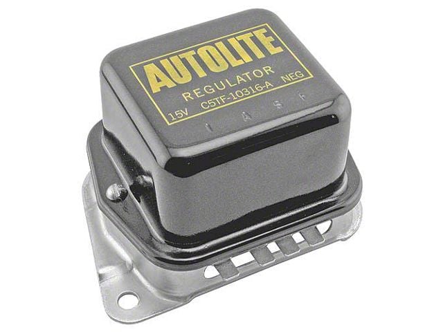 Voltage regulators are marked with the original Ford engineering numbers and they are rated for use with any Ford alternator up to 61 amps. Do not use these voltage regulators with transistorized ignition.