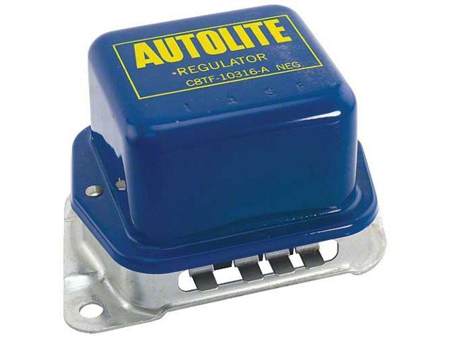 Voltage regulators are marked with the original Ford engineering numbers and they are rated for use with any Ford alternator up to 61 amps. Do not use these voltage regulators with transistorized ignition.