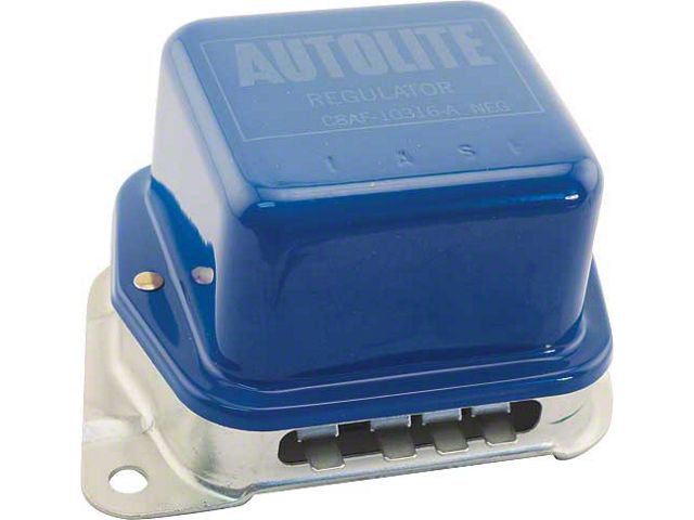 Voltage regulators are marked with the original Ford engineering numbers and they are rated for use with any Ford alternator up to 61 amps. Do not use these voltage regulators with transistorized ignition.