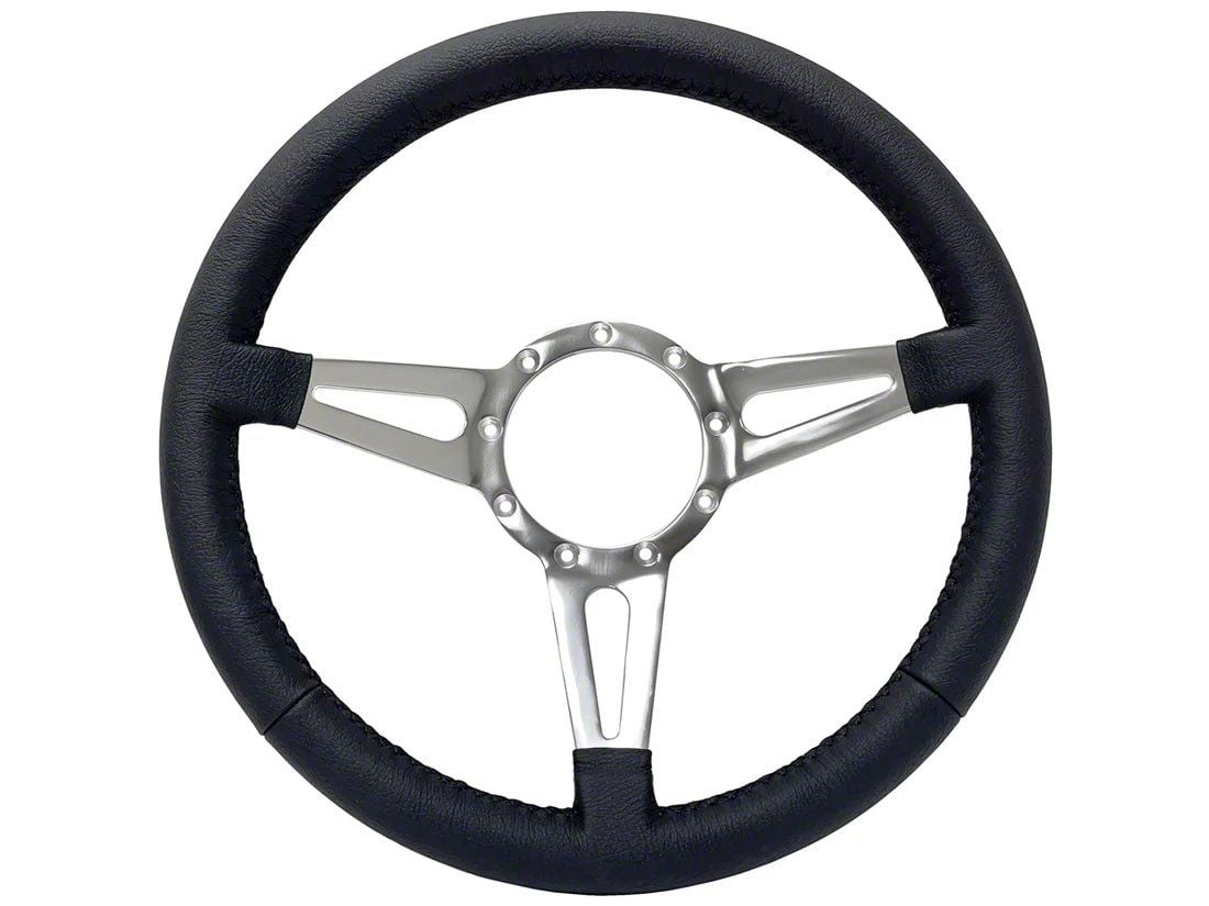 VSW 14" Black Leather Steering Wheel, 9-Bolt Billet Aluminum Spokes