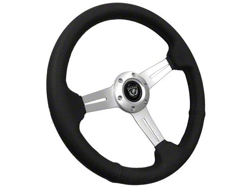 VSW S6 Sport 14-Inch Steering Wheel; Black Perforated Leather with Brushed Center (Universal; Some Adaptation May Be Required)