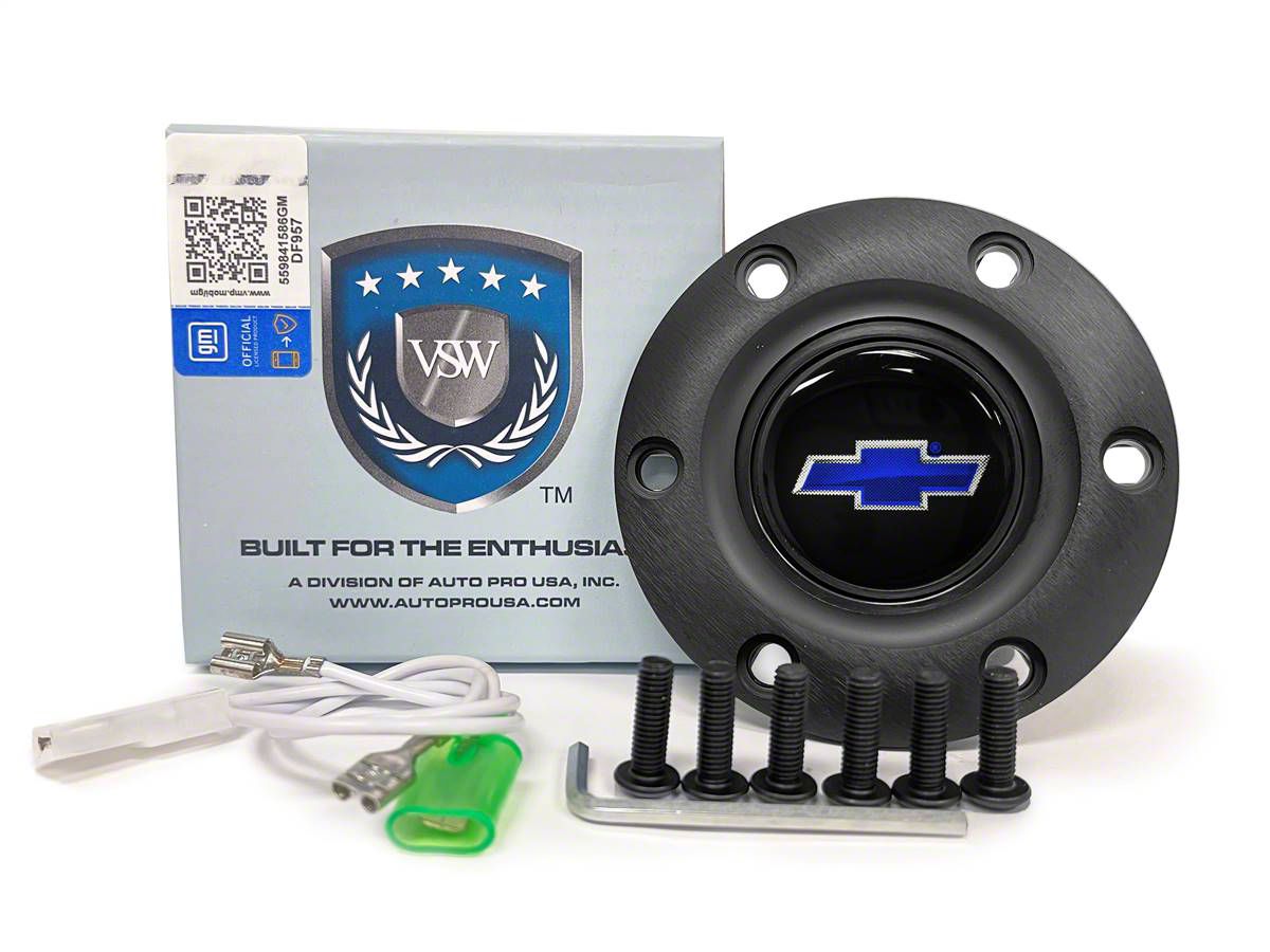 VSW S6 Standard Steering Wheel Horn Button with Blue Bowtie Emblem; Black