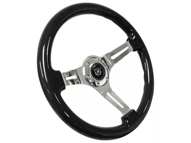 VSW S6 Sport Wood 14-Inch Steering Wheel; Black with Chrome Center (Universal; Some Adaptation May Be Required)