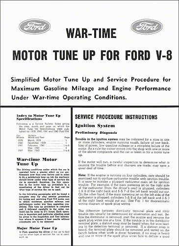 Covers the best way to tune up & service your Ford for maximum mileage & engine performance under the restraints of WWII.