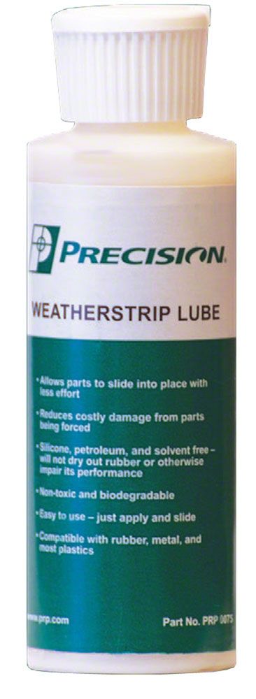 Effective Weatherstrip Lube. The Weatherstrip Lube comes in a 4-ounce bottle and is designed to help slide parts into place with ease. This lubricant is free from silicone, petroleum, and solvents, ensuring it won’t dry out rubber components. Its non-toxic and biodegradable formula makes it safe for both the user and the environment, providing a reliable and eco-friendly solution for all your weatherstripping needs.