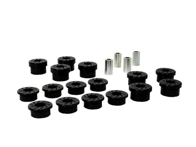 Construction and Appearance. Crafted with a matte black and raw metal finish, the kit combines durability with OEM-style aesthetics. Each bushing is constructed to resist degradation from road contaminants and high-performance use. The included part numbers—W56419, W63636, W83488, W73828, and W13407—represent Whiteline’s precise engineering, ensuring long-term strength and consistent performance.