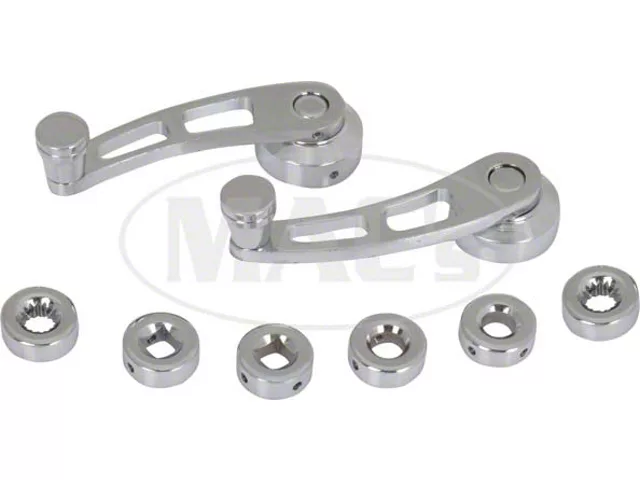 Dress up your door panels with our billet look window cranks. Easy installation and fully adjustable to any angle. Adaptors included for fitment on most applications. Bright finish, sold in pairs.