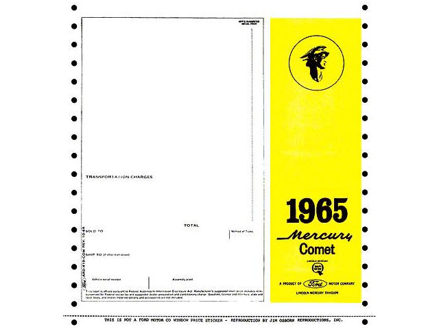 Window Price Sticker - New Car (1965 Comet)