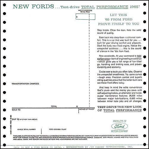 Window Price Sticker - New Car (1965 Falcon)