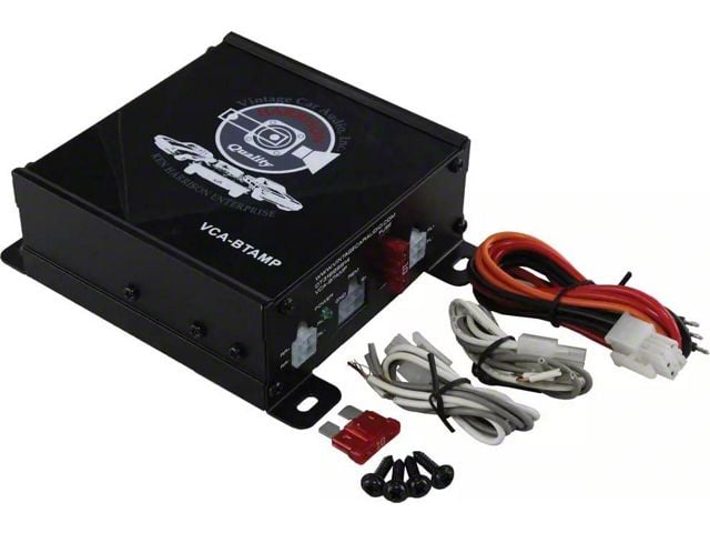 This small Bluetooth capable amplifier has the capability to stream music from any wireless Bluetooth enabled device from up to thirty feet away. It can be used with or without a radio in any vehicle. You can simply connect 2 or 4 speakers to the amplifier and work everything directly from a Bluetooth enabled device, or it also can be connected to any radio through an Amp Interface. When connected to a radio, it allows you to listen to all normal radio functions, then once your Bluetooth is enabled, the current sensing mutes the output from the radio and your streaming from your Bluetooth device begins.
